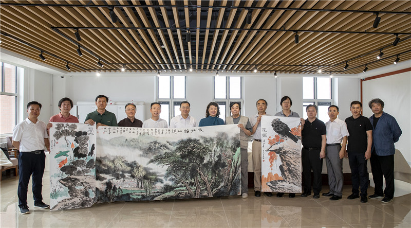 中国美协副主席、市美协主席王书平出差外地,也特意准备了绘画作品《远瞩》《河上风光》。市摄协副主席齐振宇、秘书长包静进行了摄影创作。