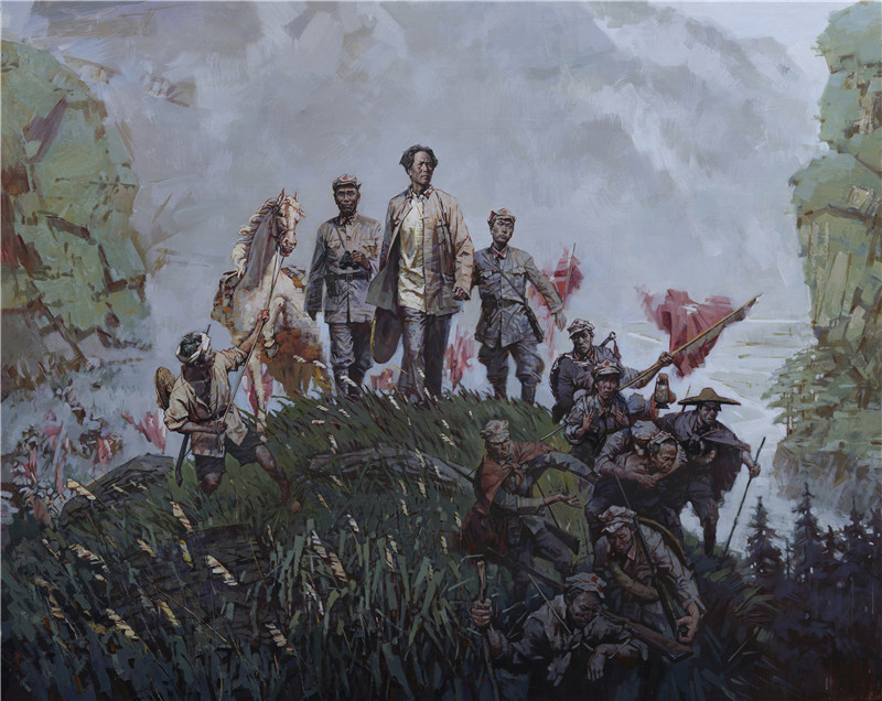 作品名称:《星火燎原——向赣南闽西进军》作者:张耀来 ![]() 作品名称:毛泽东词《西江月•井冈山》 作者:毕开文