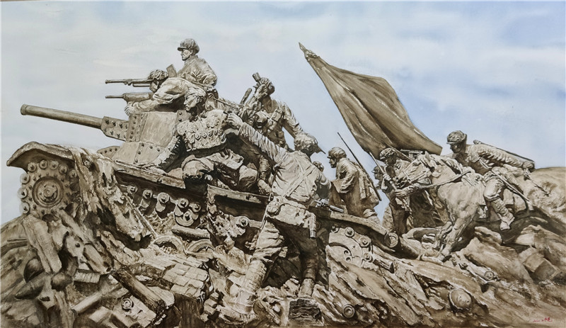 作品名称:《1949.1.15晴——金汤桥会师》作者:张耀来