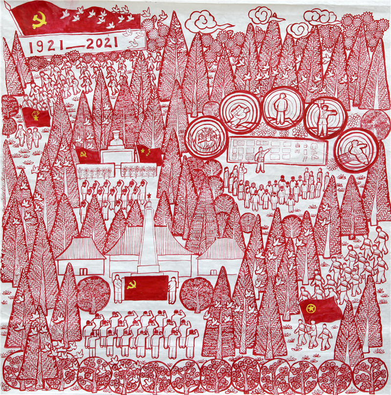 作品名称:《庆祝中国共产党成立100周年》作者:剪纸艺委会