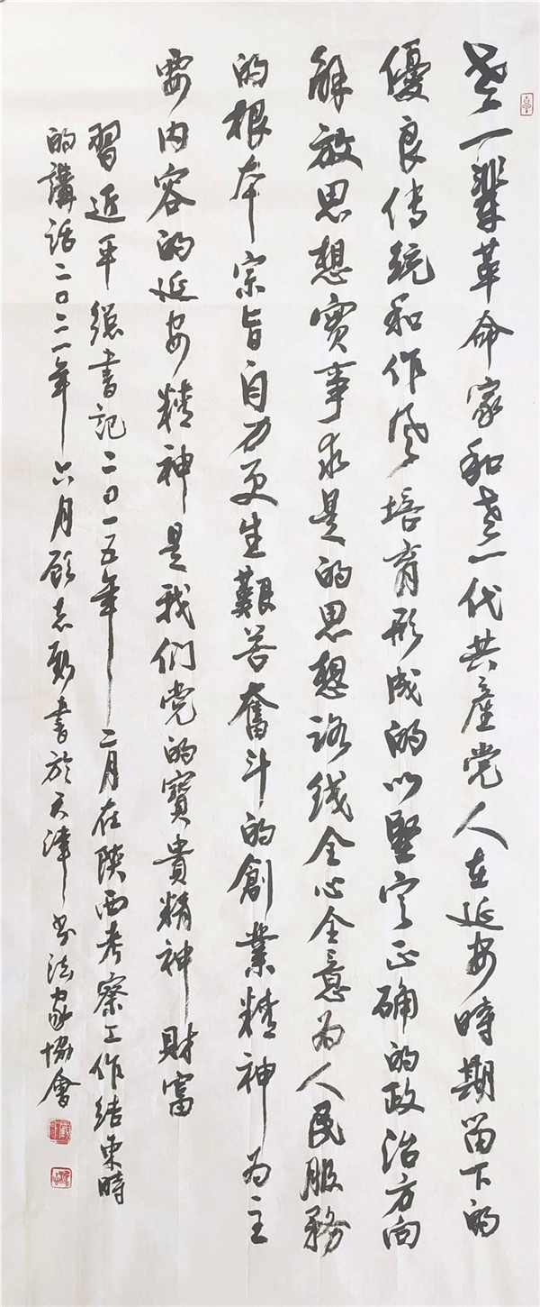 作品名称:《回望过往的奋斗路,眺望前方的奋进路,必须把党的历史学习好、总结好,把党的成功经验传承好、发扬好。》作者:余海翔