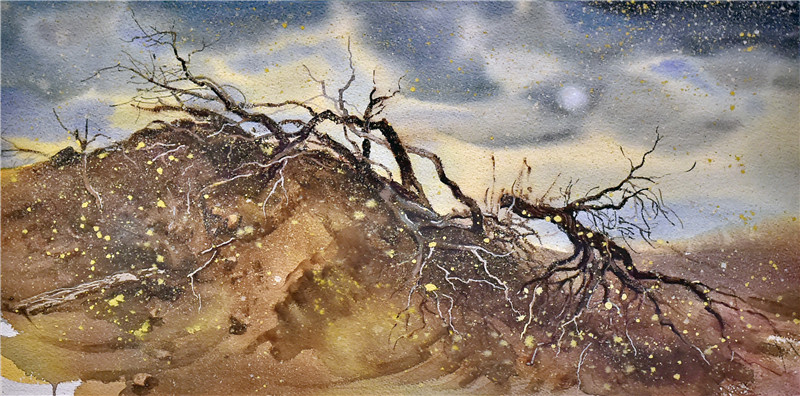 作品名称:《荒漠沙丘变绿洲》作者:滑寒冰