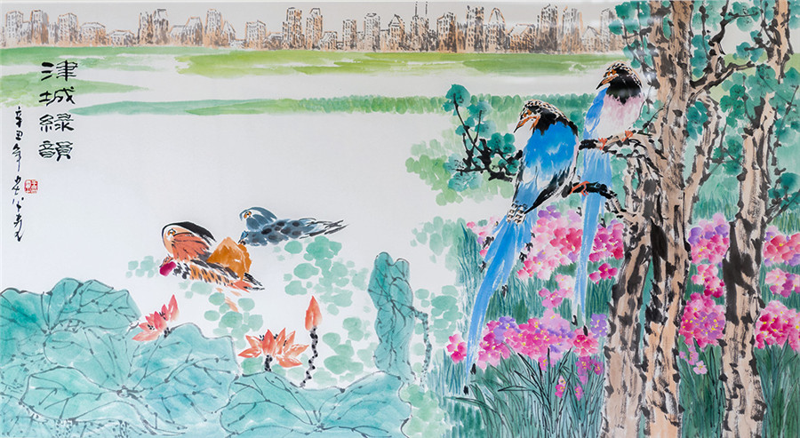 国画《潮白河畔万花开》贾广健