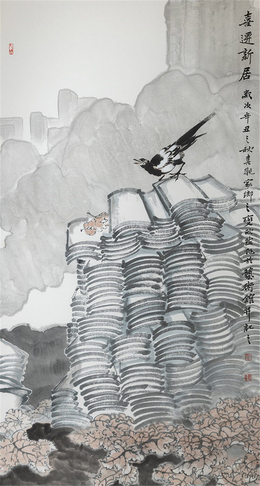 国画《喜迁新居》孟庆占