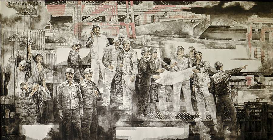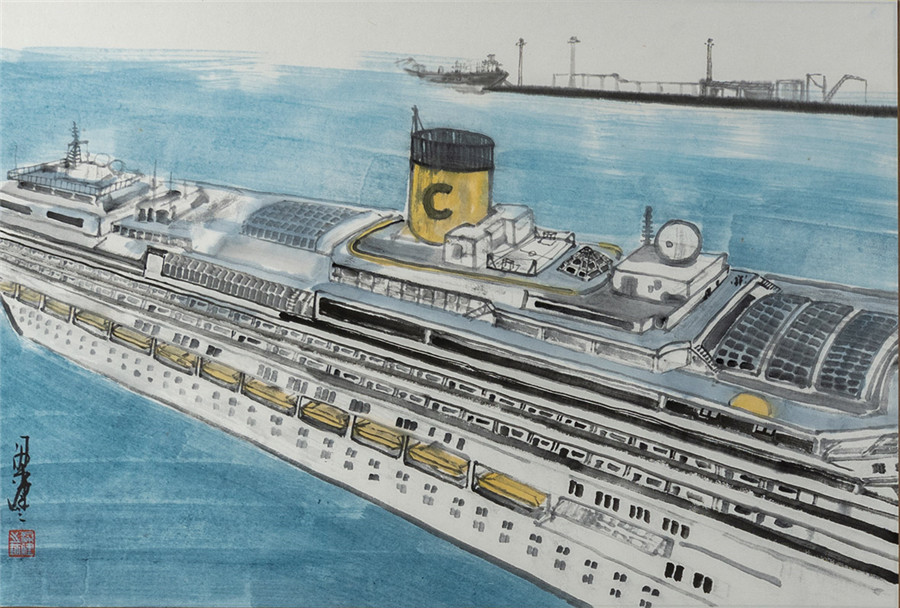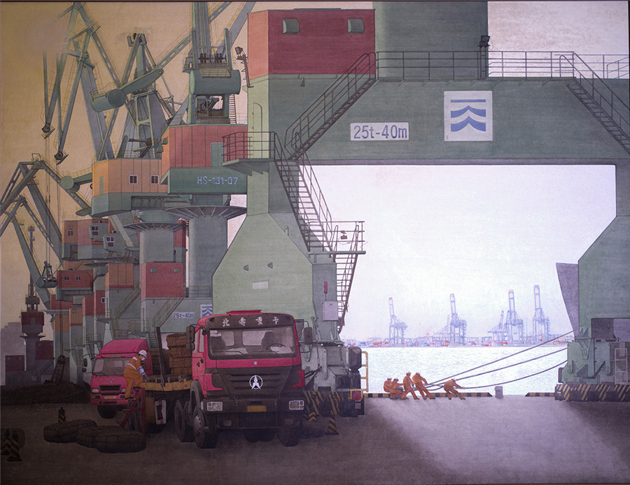 国画 《新港腾跃》王春涛
