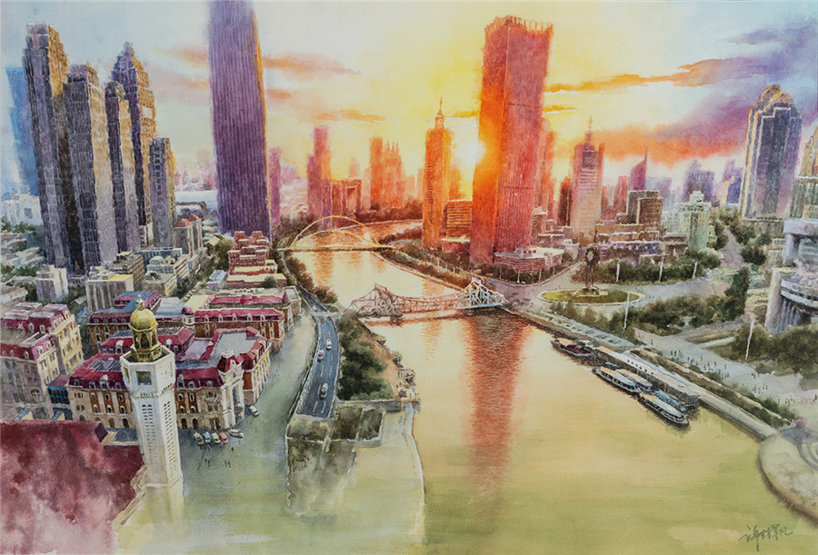 水彩《海河大观》贾建东