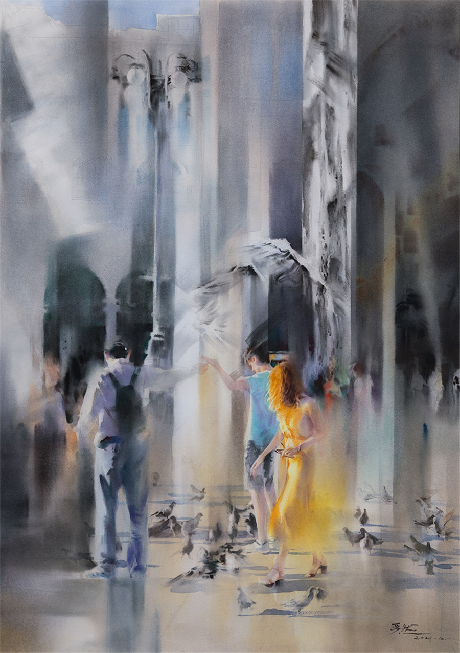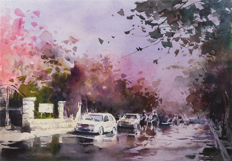 水彩画 《津城金梦》谢挥凡