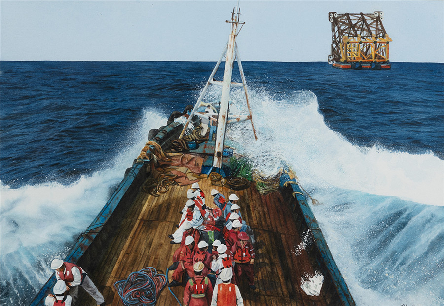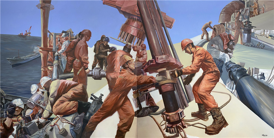 油画 《渤海石油工人》汪洋