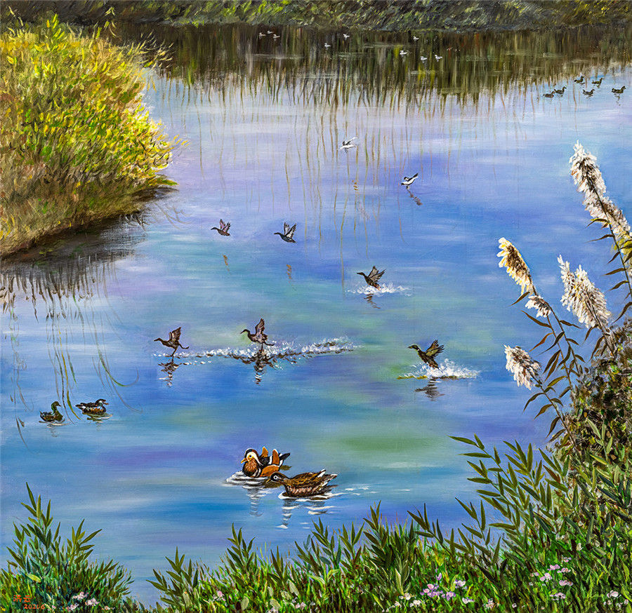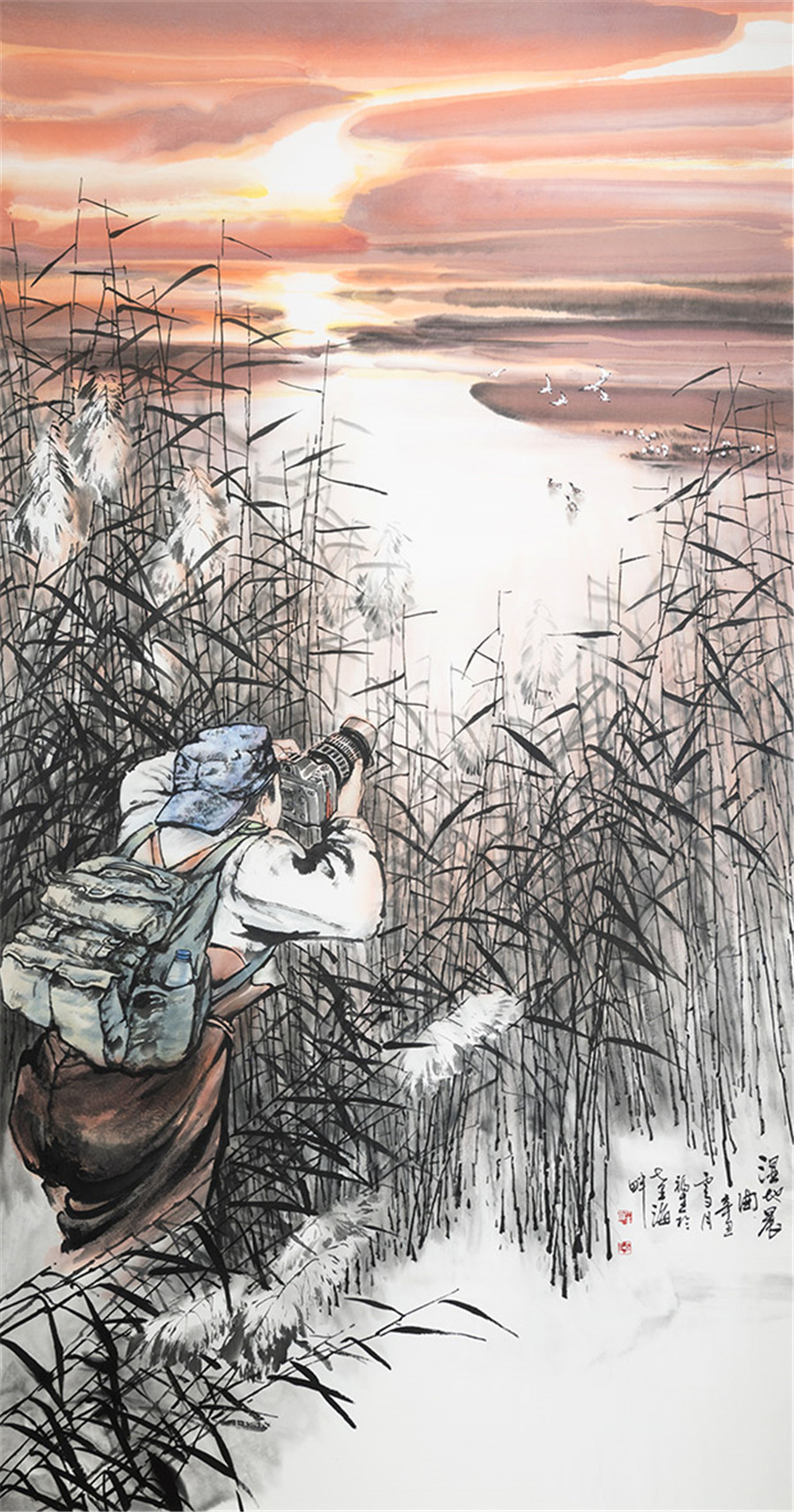 国画《湿地晨曲》李福生