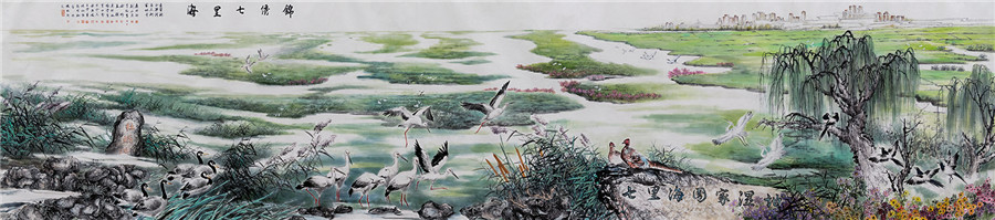 国画《锦绣七里海》宁和美协集体创作