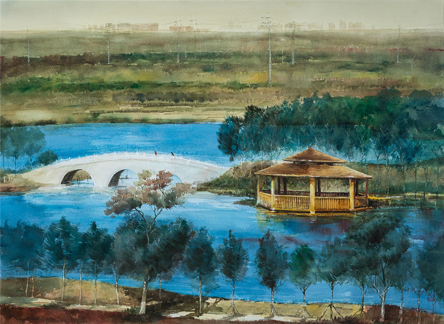 水彩《碧波白练王稳庄》叶武