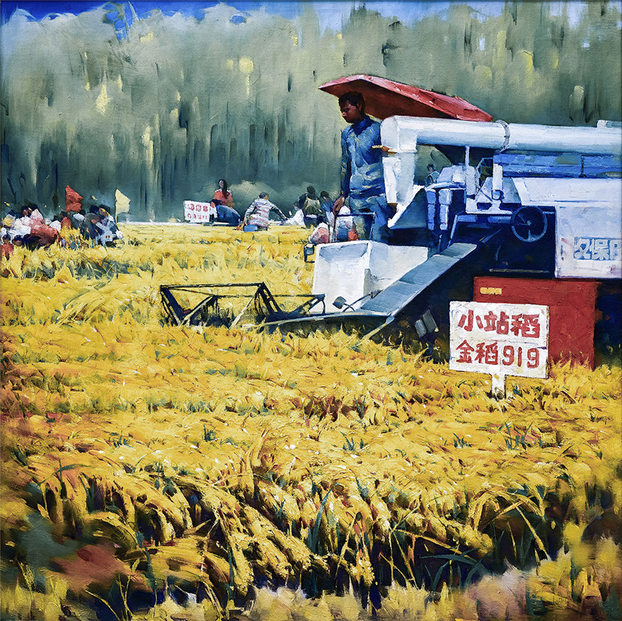 油画 《小站稻丰收》杨勇