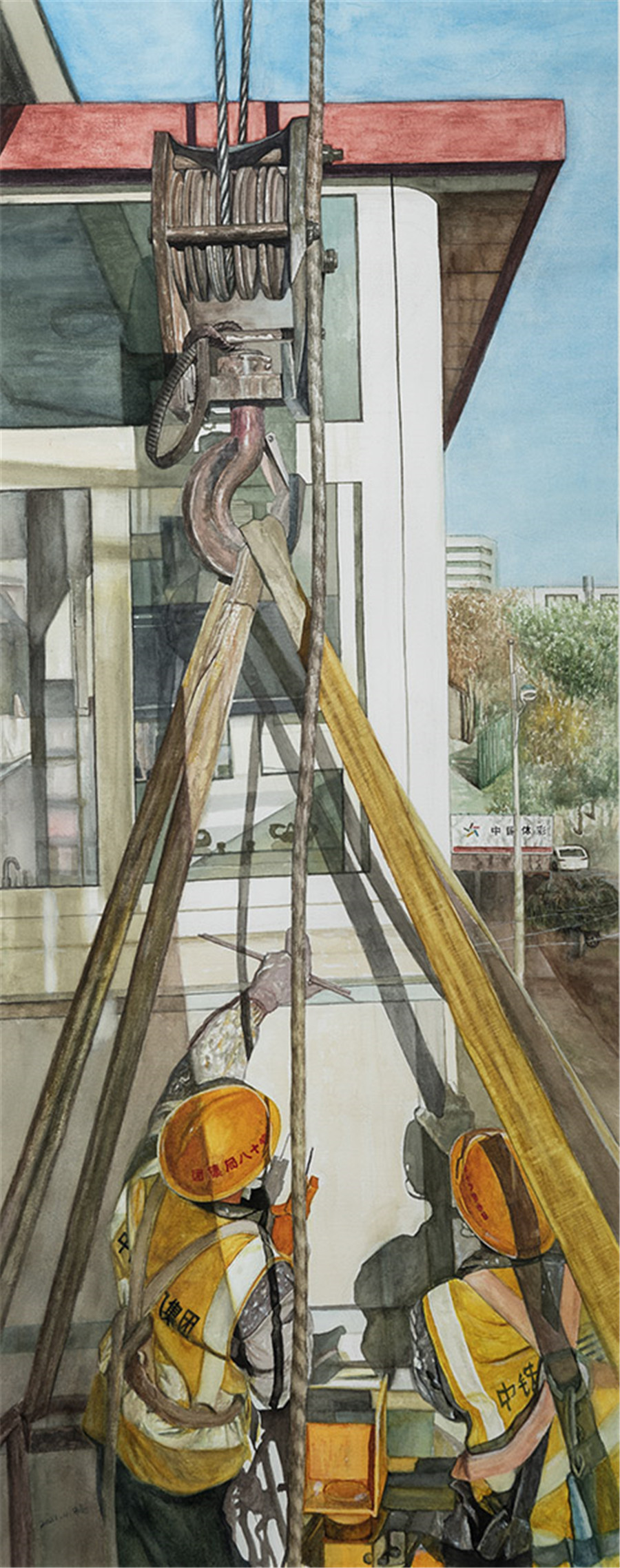 水彩 《老旧小区改造进行时》周永亮