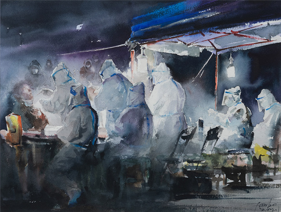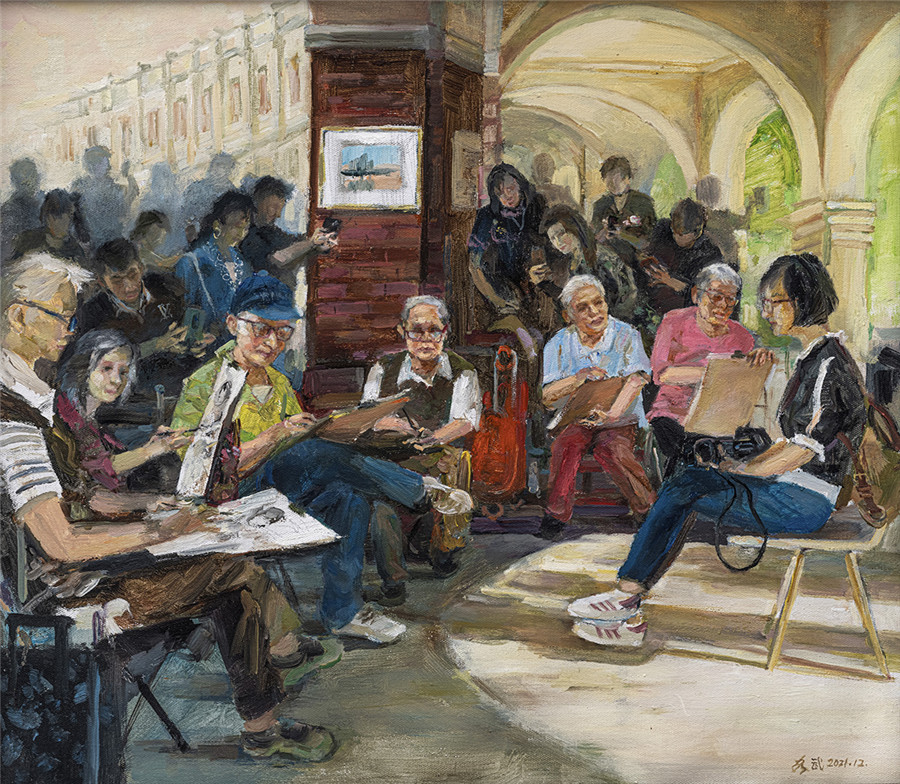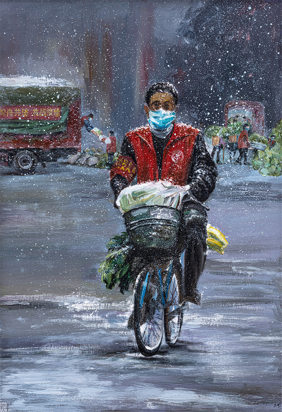 油画 《抗疫生活速写》王成