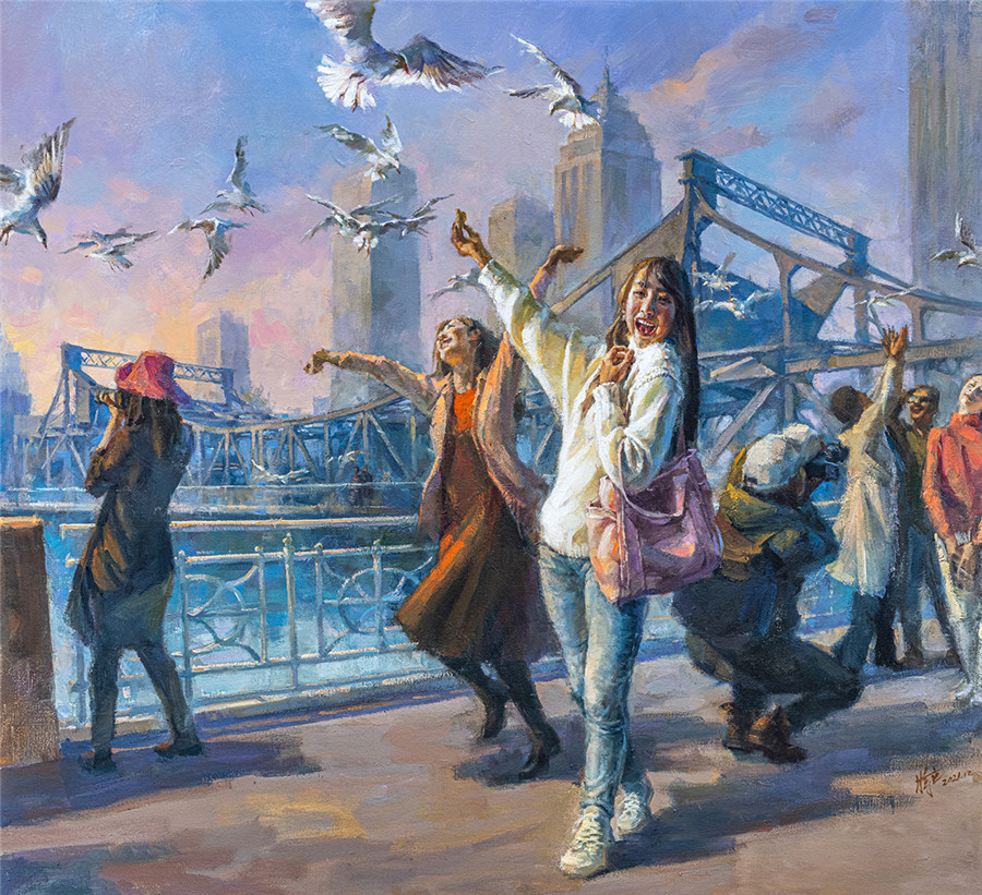油画《解放桥的海鸥》蒋立