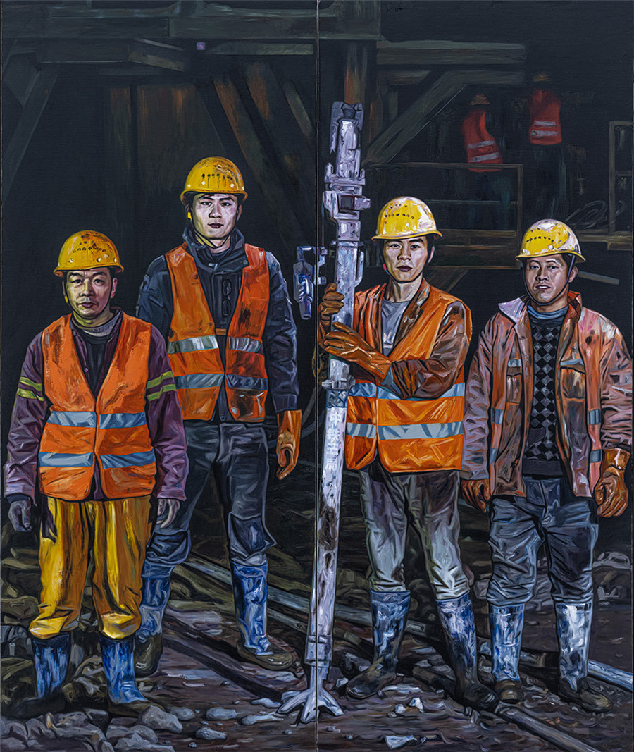 油画 《留念——地铁建设者》薛方明