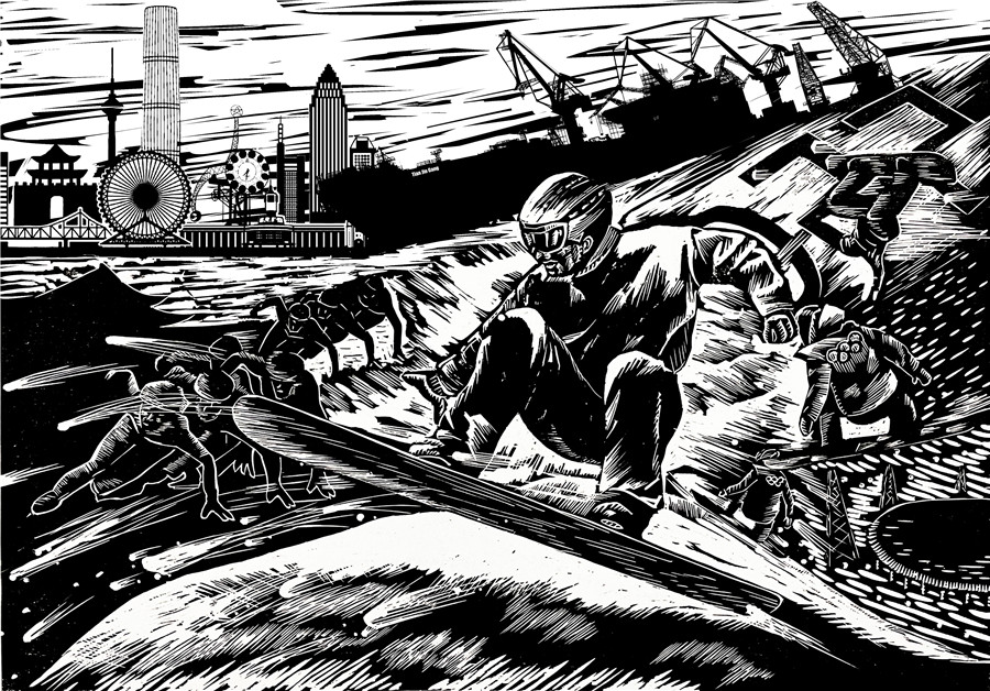 版画《津城庆冬奥》魏立博 |