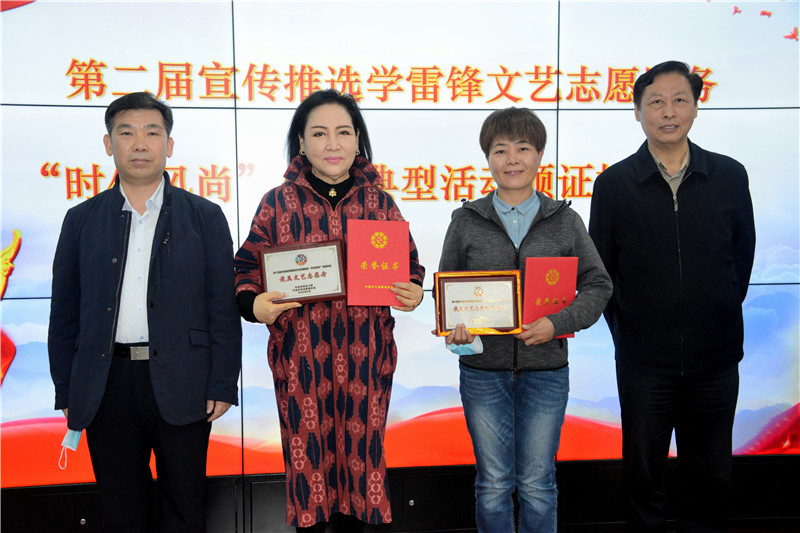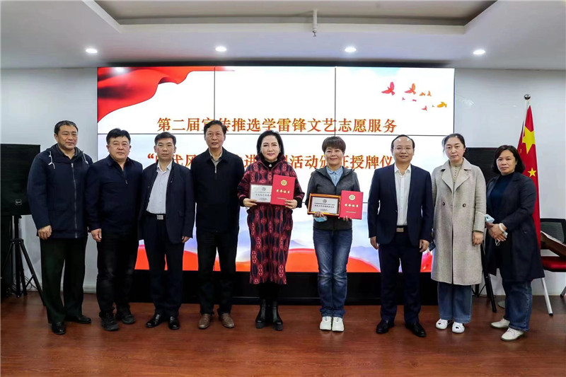 市文联、市文明办负责同志向最美文艺志愿者获得者籍薇、最美文艺志愿服务社区河东区春华街聚安东园社区颁发荣誉证书及奖牌