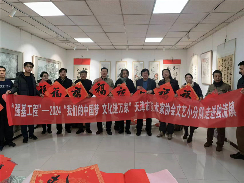 1月26日,市美术家协会文艺小分队来到静海区独流镇,开展“强基工程”——2024“我们的中国梦 文化进万家”文艺惠民服务活动,将优秀的美术作品送到基层群众手中。