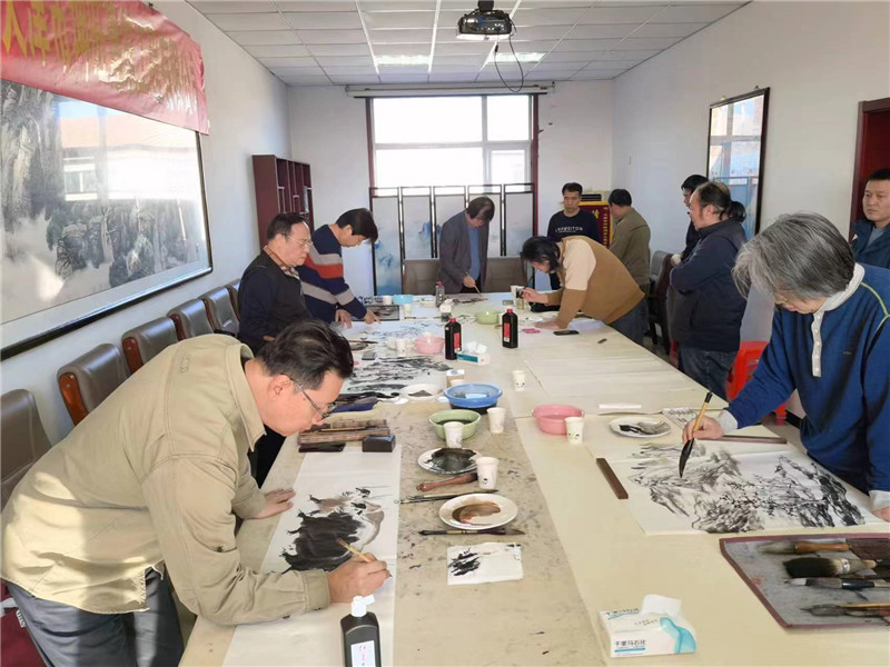 市美术家协会文艺小分队先后来到独流镇友好街新时代文明实践站、天津鑫世通达液压有限公司、天津坤旺建筑工程有限公司,与静海画院书画家、村民、车间工人座谈交流。画家们为基层群众介绍了书画鉴赏知识和绘画技巧,同时也了解了企业的生产流程,感受了工人热火朝天的劳动场景,为艺术创作积累了素材。