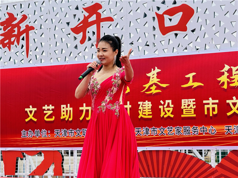 新开口镇陈静表演京东大鼓《新杨八姐游春》 此后,天津评剧院国家一级演员王晓凌的评剧《花木兰》选段“见元帅”,天津市歌舞剧院赵天刃的男声独唱《我们的祖国歌甜花香》将现场气氛不断推向高潮,观众热情似火的掌声,让演员激情绽放,台上台下气氛超燃!活动在赵天刃的歌声中落下帷幕。散场后,新开口镇的村民们意犹未尽,围在舞台前后,目送演员退场,村民董大爷表示,希望市文联及相关单位今后能多组织这样丰富多彩的活动,让宝坻的乡亲父老经常看到这么精彩的文艺演出。