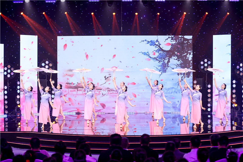 本次大赛评委、天津市舞协秘书长程伟航为获奖选手颁奖 颁奖典礼分为《福·颂》《盈·享》《斑·斓》《炫·梦》《乐·魂》五个篇章,20余支队伍进行了展演。舞者们用舞蹈抒发爱国情怀,大力弘扬社会主义核心价值观,表达对祖国、对民族、对文化的归属感、认同感。