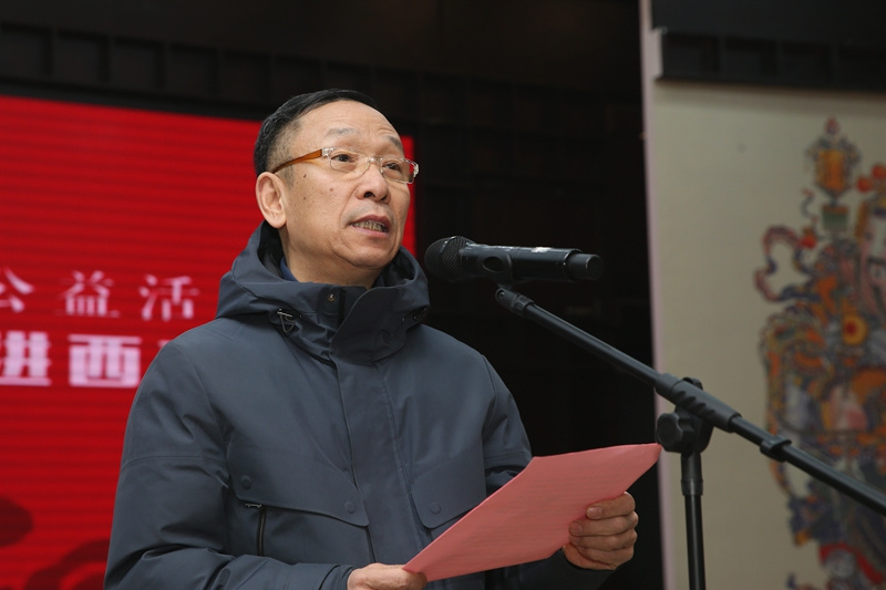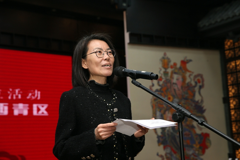 董玉倩在致辞中表示,本次高规格、高档次的“万福迎春”公益活动在杨柳青古镇举办,不仅为西青区基层群众接触高雅艺术、提高艺术审美搭建了良好的平台,也传递了新春的祝福与温暖。希望西青区文艺工作者以此为契机,继续组织广大书法家、书法工作者和志愿者广泛开展形式多样、内容丰富的文艺惠民活动,不断丰富群众节日文化生活,为推动新时代西青文艺高质量发展作出新的更大贡献。