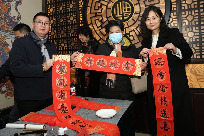 活动期间,书法家们为当地群众和杨柳青镇天津好人、优秀志愿者、优秀社区工作者、民营企业家、新的社会阶层人士等先进典型代表,现场书写并赠送福字和春联500余副。