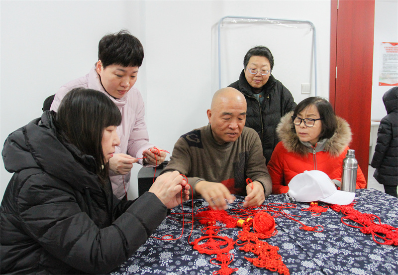绳结艺术家李伯江把一根根丝线绕圈、打结,动作娴熟流畅,一个个精致的绳结逐渐成型。火红的中国结,承载着团圆、吉祥的寓意,紧密交织的丝线,将美好的祝福紧紧相连。