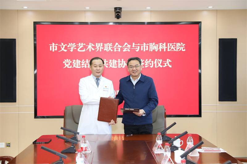市文联党组书记、专职副主席赵华和市胸科医院党委书记郭志刚签署党建结对共建协议