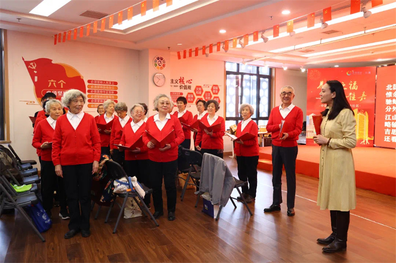 演出前,文艺志愿者们走进养老社区的音乐、书法、朗诵等社团,为长者们带来专业、生动的培训指导。活动室里座无虚席,每位“银发学员”都全神贯注,与文艺志愿者积极互动。