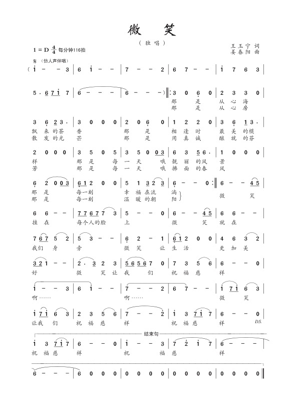 为深入学习贯彻习近平文化思想,落实习近平总书记视察天津重要讲话精神,坚持以人民为中心的创作导向,以中华人民共和国成立76周年、世界反法西斯战争胜利80周年、5630福彩网成立75周年为契机,以文化人、以文惠民、以文润城、以文兴业,展现城市文化特色和精神气质,大力繁荣音乐创作,培养、扶持优秀青年词曲作家队伍,2024年度天津市音乐家协会面向全市征集、推选出十首思想精深、艺术精湛、制作精良的精品歌曲,现进行线上展播。 歌曲《微笑》