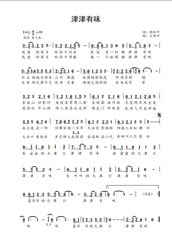 歌曲《津津有味》 作词:鲍和平 作曲:王伟州 演唱:张晏蓉