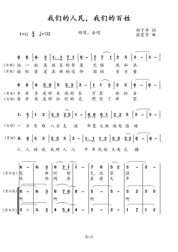 歌曲《我们的人民,我们的百姓》 作词:胡宁华 作曲:张震宇 演唱:张鹤、宋茂斌