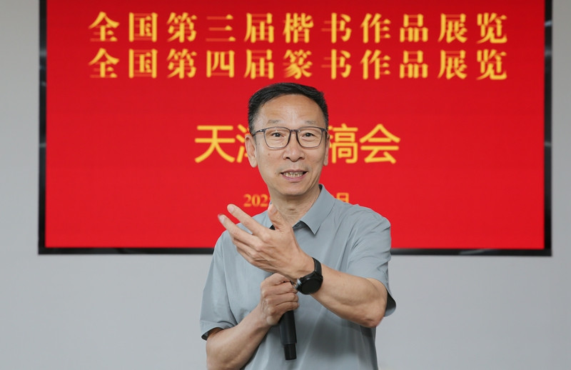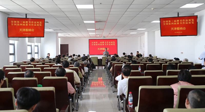 8月28日,天津市书协和市书协楷书委员会、篆书委员会主办的全国第三届楷书作品展览、全国第四届篆书作品展览看稿会在西青区产业园举行。中国书协副主席、天津市书协主席张建会,天津市书协副主席兼秘书长杨健君,天津市书协原副主席李锋、沈宪民、邵佩英,天津市书协副主席、篆书委员会主任吕铁元,天津市书协副主席、楷书委员会主任杨国欣,天津市书协副秘书长薛卫林等指导老师和全市各区推荐的书法创作骨干100余人参加活动。