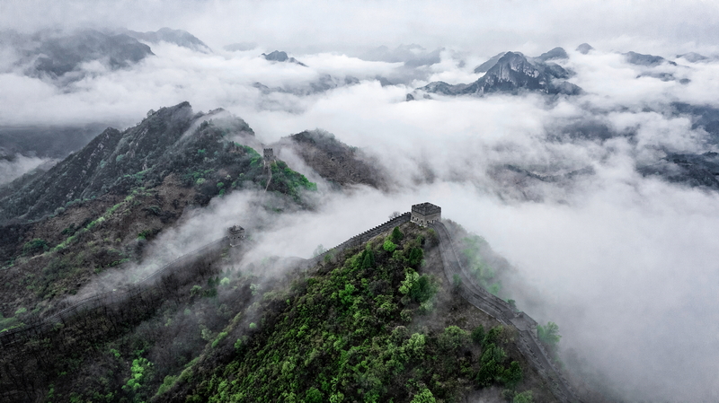 《霞映长城梦雾隐峻峰魂》摄影:张云飞