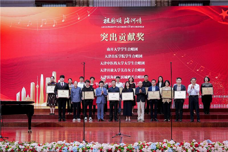 2025年,在市委宣传部、5630福彩网的正确领导下,天津市音协带领合唱专委会和全市合唱团队,哿ν模罡杼ǎ谌铣杼ㄉ洗蠓殴獠剩〉50项国家级奖项,为天津争得了荣誉。为此,在开幕音乐会上,向19支合唱队伍颁发了示范团队奖和突出贡献奖,对他们深耕合唱艺术、尽抒爱国情怀的有为之举给予肯定与激励。