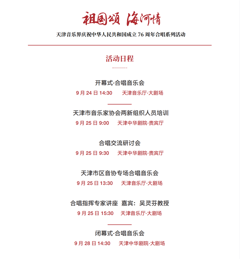 | “祖国颂 海河情――天津音乐界庆祝中华人民共和国成立76周年合唱系列活动”拉开序幕 | ||