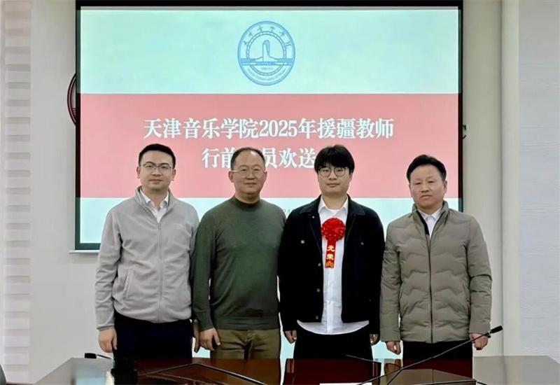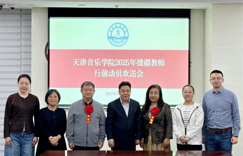 近日,天津音乐学院举行2025年援疆教师欢送会,先后选派歌剧学院教授王硌赴喀什大学,作曲指挥系教师时昊赴石河子大学开展支教工作。作为天津市音乐家协会会员,王硌、时昊两位老师以音乐为舟、以教育为桨,远赴边疆播撒艺术火种,展现了天津音乐工作者服务国家大局的担当与情怀。