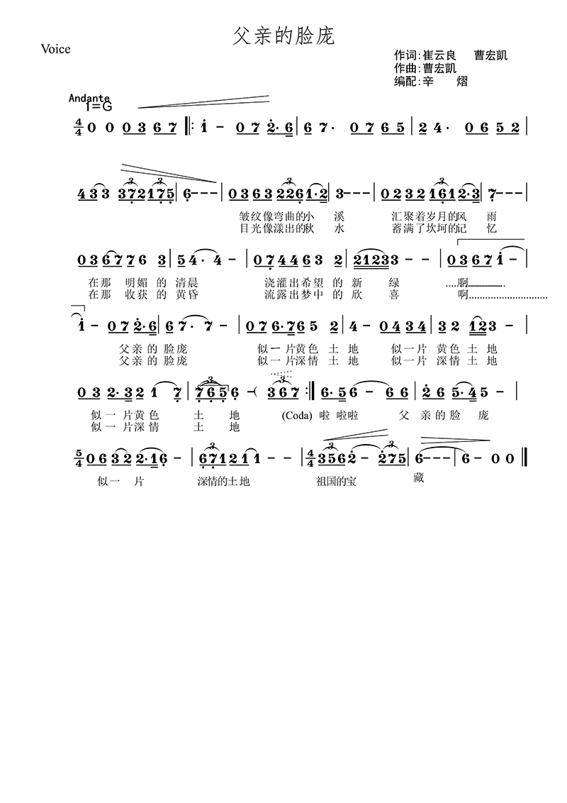2.歌曲《父亲的脸庞》 作词:崔云良、曹宏凯 作曲:曹宏凯 演唱:张岩