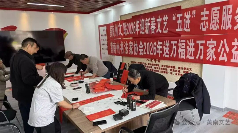 为深入贯彻落实党的二十届四中全会精神,践行“人民文艺为人民”的宗旨,营造欢乐祥和、文明喜庆的新春氛围,黄南州文联精心组织策划并启动了“我们的节日·春节”系列文艺志愿服务活动。活动以文艺“五进”为载体,组织州书法家协会骨干志愿者组成文艺轻骑兵,深入基层一线,以笔墨传情,为广大干部群众送上了丰盛的新春文化大餐。