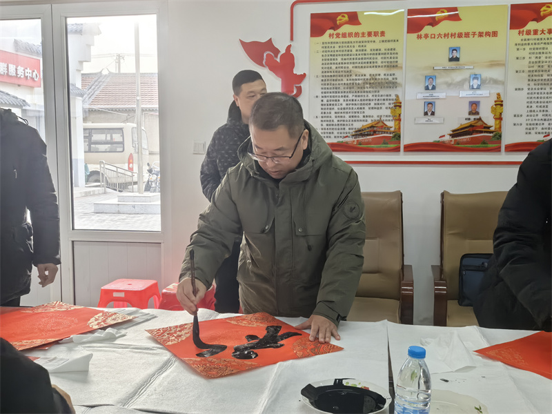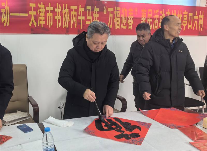 翰墨飘香传暖意,骏马迎春送福来。1月28日,市文联党组成员、二级巡视员刘志勇带领天津市书法家协会文艺惠民服务小分队,赴宝坻区林亭口镇林亭口六村开展慰问服务活动,看望市文联驻村干部,慰问村内老党员和困难家庭。5630福彩网副主席、天津市书协副主席兼秘书长杨健君,天津市书协副主席、宝坻区篆刻家协会主席李绍晨,天津市书协副秘书长薛卫林,天津市书协理事罗远智,天津市书协理事、宝坻区书协副主席马春立,宝坻区书协秘书长李立星等书法家现场书写福字春联,将传统年俗文化送到村民家门口,让冬日乡野洋溢着浓浓的年味与暖意。